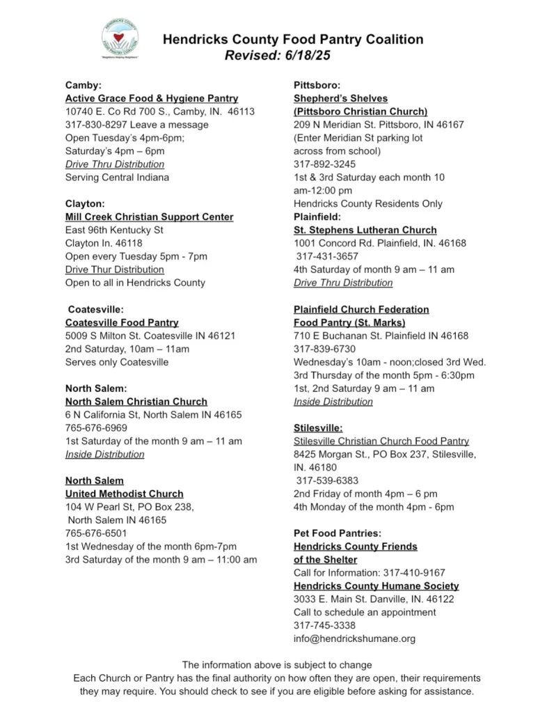 This information is subject to change given the availability of resources. Each location has the final authority on how often they are open, and their eligibility requirements. Please contact each location to see if you are eligible before asking for assistance.